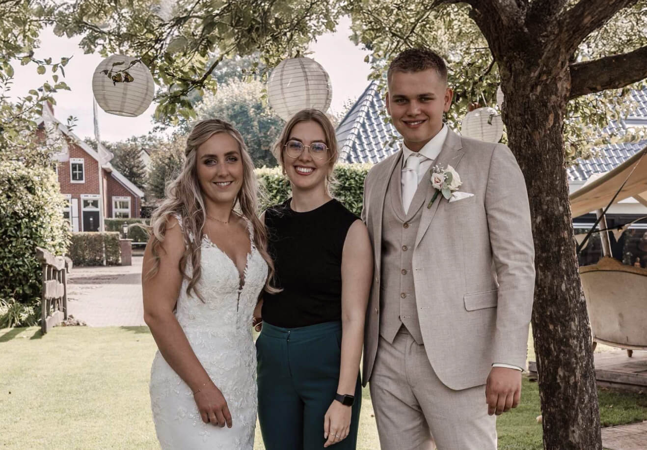 Eerst overwogen we om een vriend in te schakelen, maar we besloten uiteindelijk ze niet te belasten en dat was een goede keuze: 90 man coördineren, omgaan met last-minute verzoeken, gasten die het liefst zo lang mogelijk speechen: het was geen eitje! Lisanne heeft het allemaal goed afgehandeld. Wat haar bijzonder maakt, is hoe ze het overzicht goed bewaart en hóe ze zaken afhandelt. Lisanne communiceert prettig en straalt vriendelijkheid en rust uit. Ze heeft overal over meegedacht. Ze is iemand die er 100% voor gaat en is naast goed voorbereid iemand die ontzettend haar best doet om er voor haar klanten te zijn. Bedankt voor alles! We raden haar van harte aan!