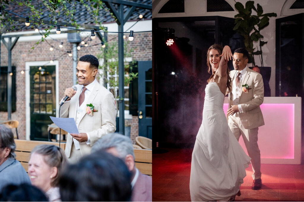 De borrel was geslaagd, het fotomoment geweest, het is tijd om te genieten van een heerlijk diner. Tijdens het diner spraken verschillende gasten de mooiste woorden over jullie uit als bruidspaar met hun speeches. Wat een warmte straalde hiervan af.