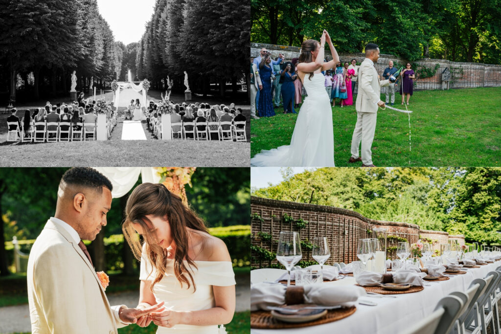 Na een aantal maanden voorbereiden was het zo ver. De week voor de bruiloft van M&K op Buitenplaats Beeckestijn. De week voor hun bruiloft heeft het nog flink geregend, maar op 8 augustus scheen de zon helder en als een warme deken over de trouwlocatie. Jullie konden, zoals gewenst, buiten trouwen in de bekende ‘groene kom’!